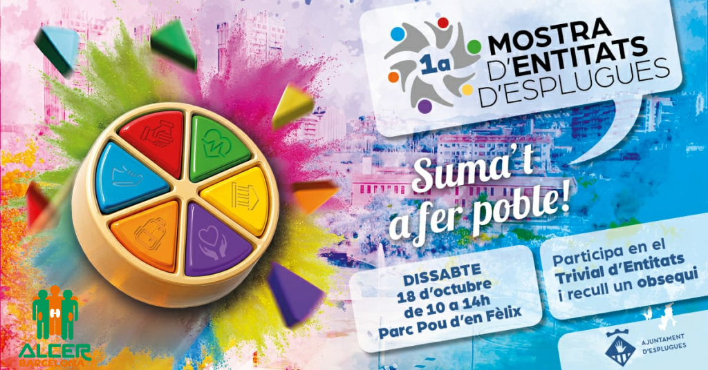 Día:  Sábado, 18 de octubre de 2025 Horario:  de 10 a 14 h Lugar: Parc Pou d’en Félix El próximo domingo 18 de octubre participamos  en la I Mostra d’Entitats d’Esplugues para explicar a la ciudadanía las actividades que lleva a cabo la asociación. Una jornada de espíritu domunitario abierta a todos los públicos. Con […]